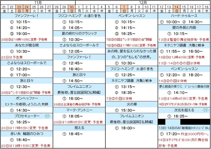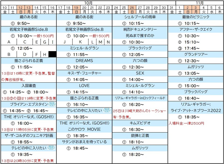 上映作品・上映時間は、予告なく急遽変更になる場合があります。
